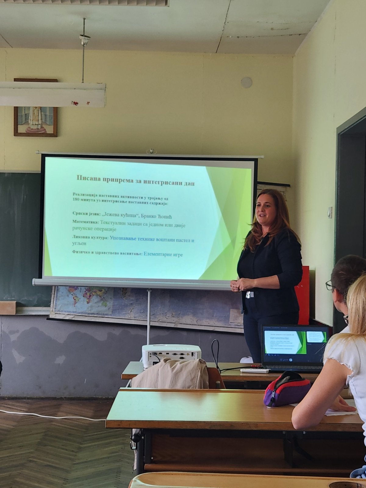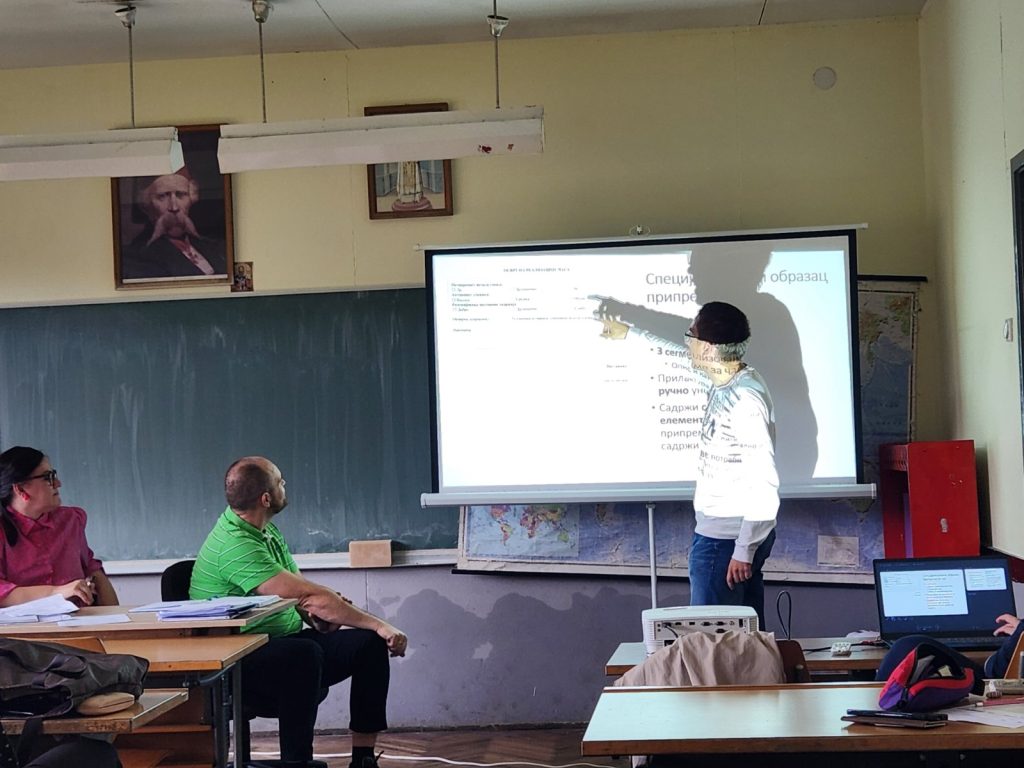 Професор разредне наставе Марија Вујић и наставник хемије Божидар Илић реализовали су теме стручног усавршавања на сједницама Одјељењског и Наставничког вијећа наше школе, у виду стручних презентација пред члановима вијећа. Учитељица Марија Вујић представила је примјер добре праксе кроз интегрисану припрему за наставни час „Јежева кућица“ аутора Бранка Ћопића, док је наставник хемије Божидар Илић колегама изложио сопствене обрасце за планирање и реализацију наставних часова. У свом излагању нагласио је иновативне елементе ових образаца, те подијелио лична запажања о њиховим предностима и практичној примјени у наставном процесу.